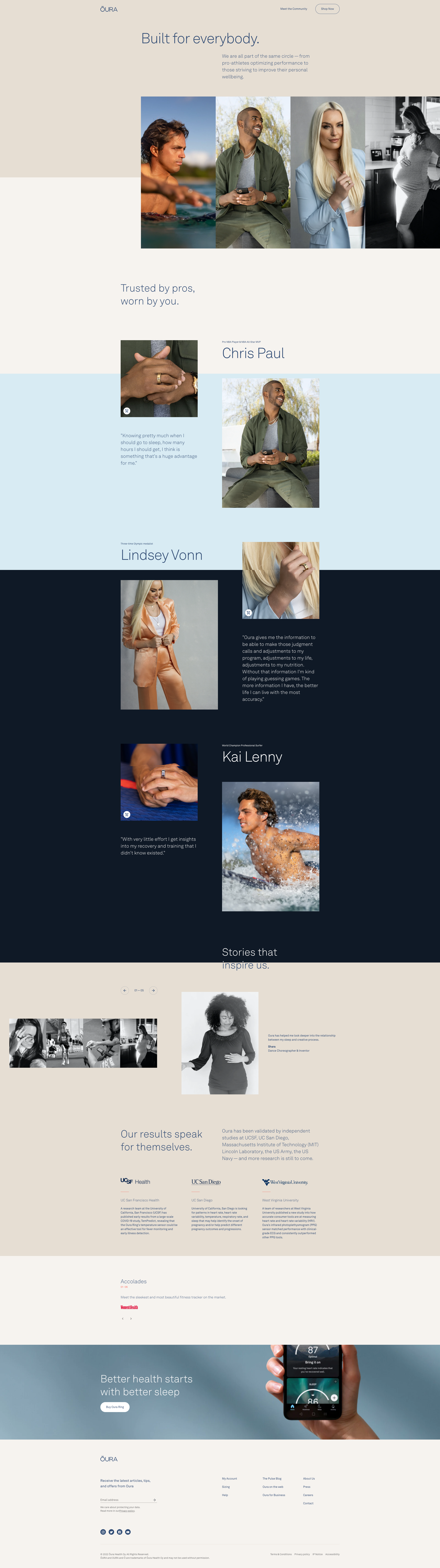 Oura’s community is all-encompassing and we needed a hub to showcase everyone from our institutional partnerships, exceptional individuals, to health-conscious celebrity personalties.
